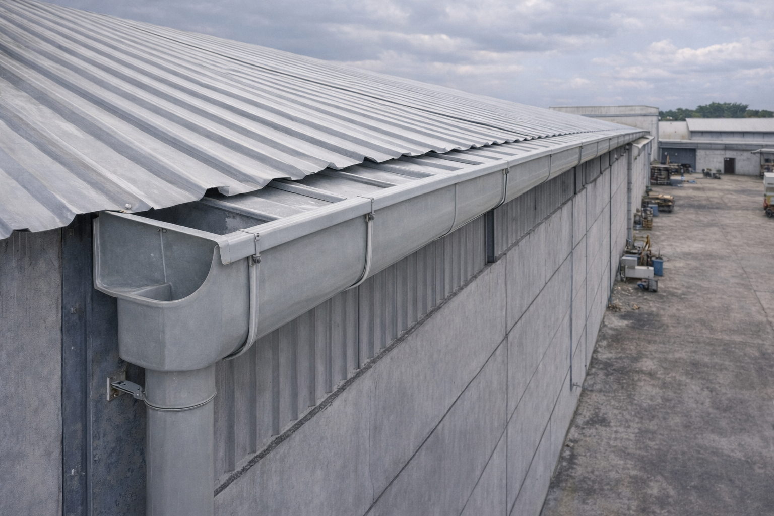 Sistem talang air hujan dari bahan fiberglass yang ringan dan tahan lama